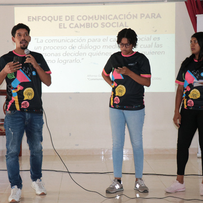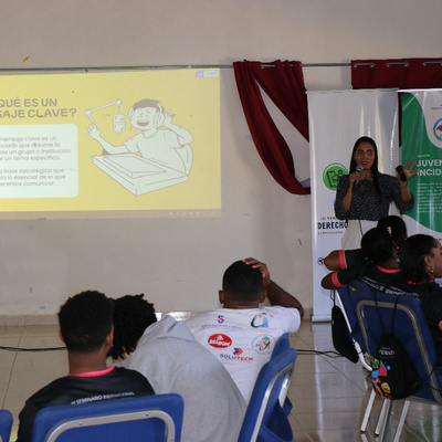 La comunicadora social Yaira Portes lideró el taller de Vocería Efectiva, en el que las y los jóvenes fortalecieron habilidades para la construcción de mensajes clave, el manejo de entrevistas y la participación en escenarios públicos y mediáticos. Por su parte, Starling Montero, periodista y facilitador del módulo de Comunicación Estratégica, acompañó a los grupos de trabajo en el diseño de campañas digitales, el uso de redes sociales y la creación de contenidos orientados a la incidencia.